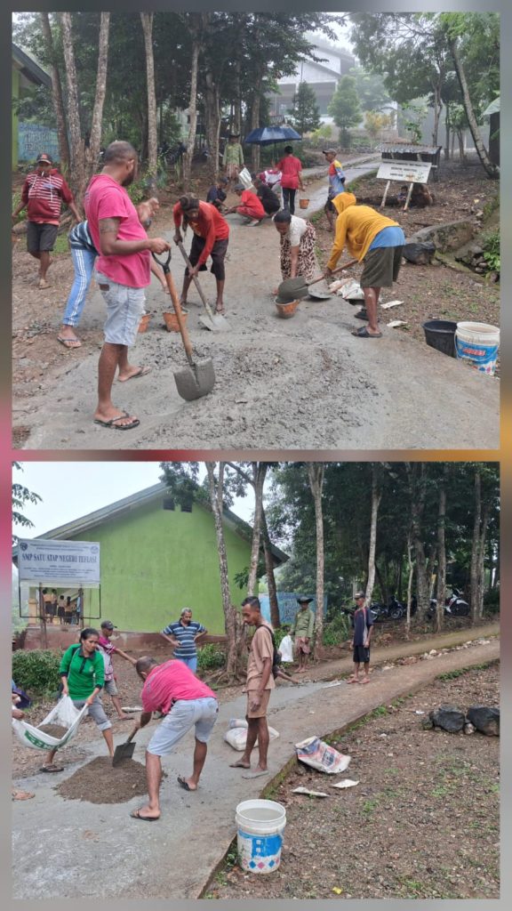 Dengan adanya perbaikan jalan ini, diharapkan wajah pusat pemerintahan desa menjadi lebih rapi dan representatif, sekaligus membangkitkan roda ekonomi warga sekitar yang sering melintasi jalur tersebut.// Contrao Reminggo//